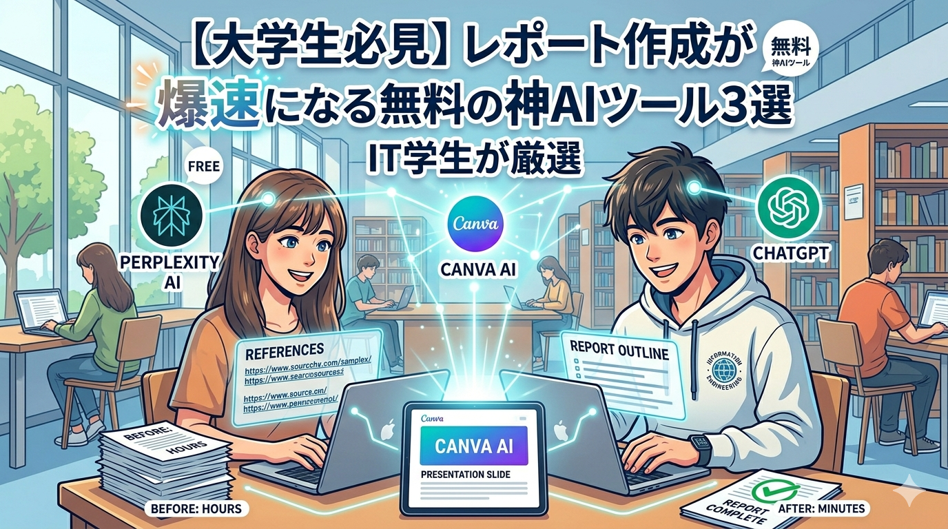 この記事では、現役大学生の私が実際に使って「これは手放せない!」と感動した無料の神AIツール3選を紹介します。単にズルをするためではなく、「作業時間を極限まで減らして、本当にやりたいこと(遊びや副業など)に時間を使う」ためのハックを解説します!